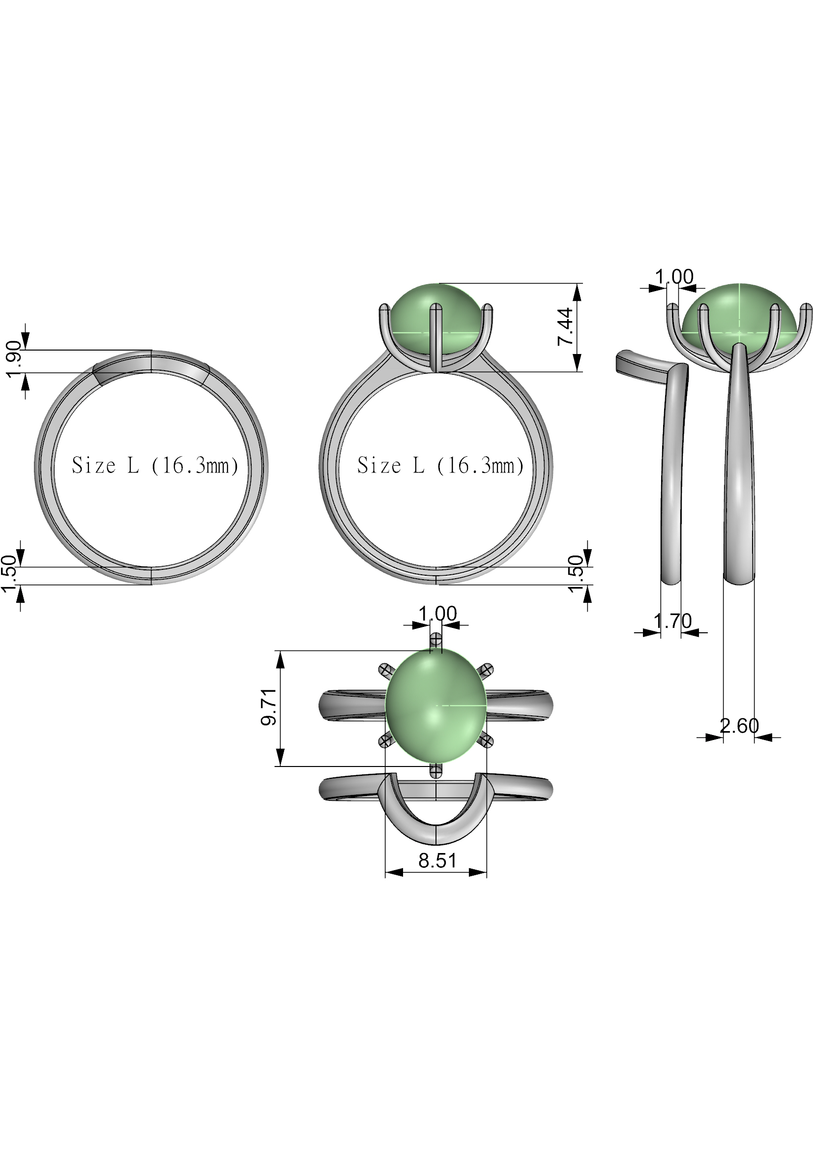 In most cases, opal engagement rings will be set in a six prong claw or rub-over bezel. Read below for some more information about what both settings are.